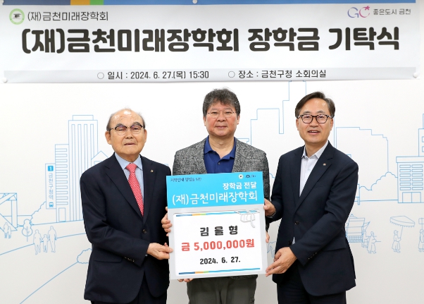 김을형 님은 “거주지는 금천구가 아니지만 금천구에서 활동하며 각별한 애정이 생겨 장학금을 기탁하게 됐다”라며, “가정형편이 어려운 학생들이 돈 걱정 없이 학업에 집중할 수 있게 장학금이 쓰였으면 좋겠다”라고 말했다.
