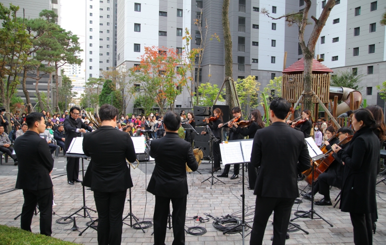 ▲ 노원센트럴푸르지오에서 웨스턴심포니 오케스트라가 연주하는 장면(2023년) |