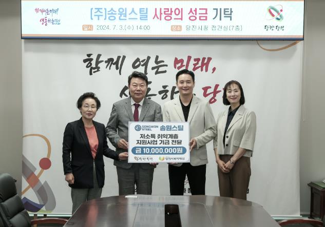 [뉴스서치] ㈜송원스틸이 7월 3일 당진시를 방문해 당진시 저소득 취약계층 지원을 위해 성금 1,000만 원을 전달했다.