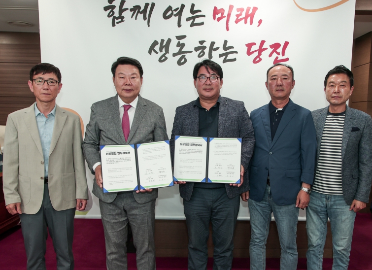 [뉴스서치] 당진시가 지난 5월 31일 당진시청에서 ㈜조이, 당진축협, 농협해나루조합공동사업법인과 함께 당진 농산물 공급 확대를 위한 상생발전 업무협약을 체결했다.