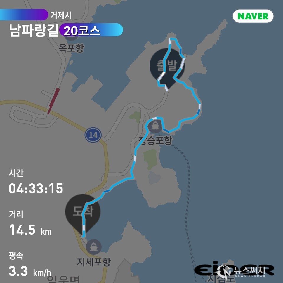남파랑길 거제구간 20코스 트레킹 코스 및 기록