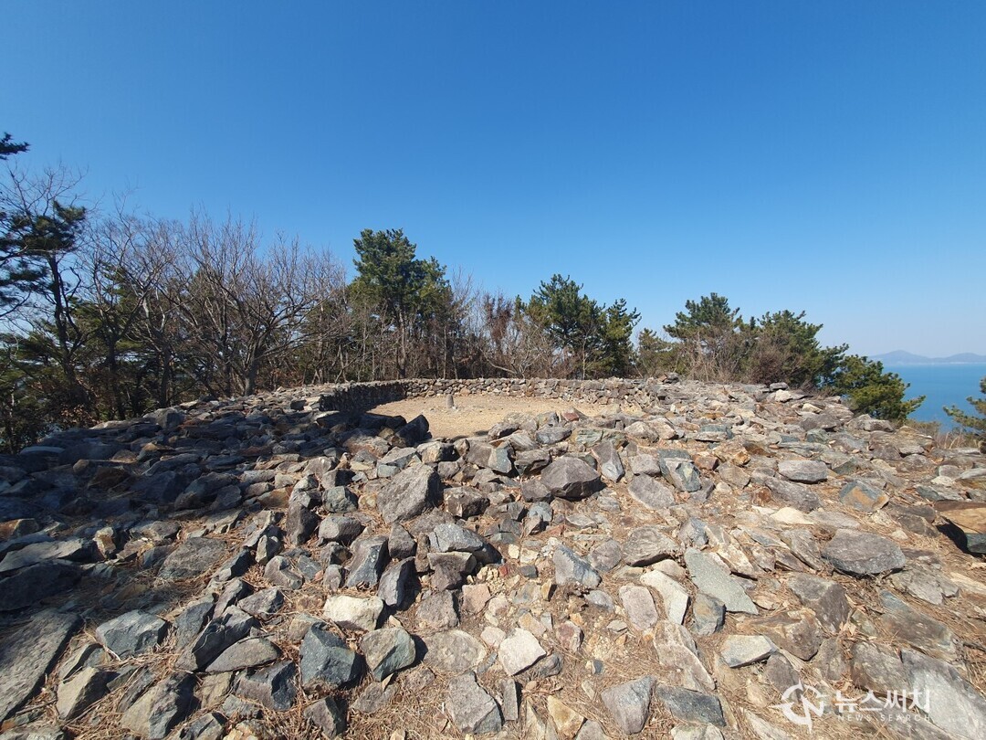 필자는 능포봉수대 석축에 올라 멀리 가덕도 방향 남해바다를 바라보면서 잠시동안 심호흡을 하며 휴식을 취하였다.
