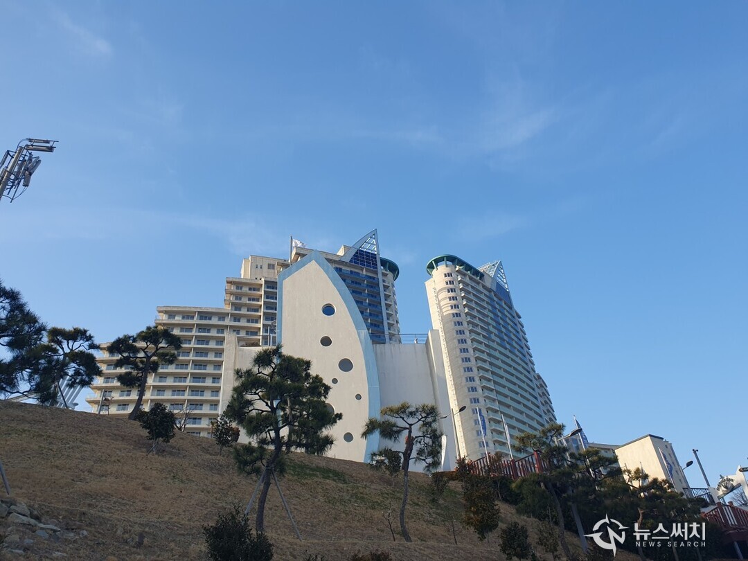 ‘소노캄 거제’는 유명한 해양마리나리조트로 워터파크까지 갖춘 휴양시설인데, 여름철에는 많은 휴양객이 넘치는 곳이지만 아직은 3월 초순이라서 사람들이 그리 붐비지는 않았지만 해변 데크길에 전망대가 설치되어 있어서 제법 많은 사람들이 해변 데크길을 거닐면서 산책을 하고 있었다.