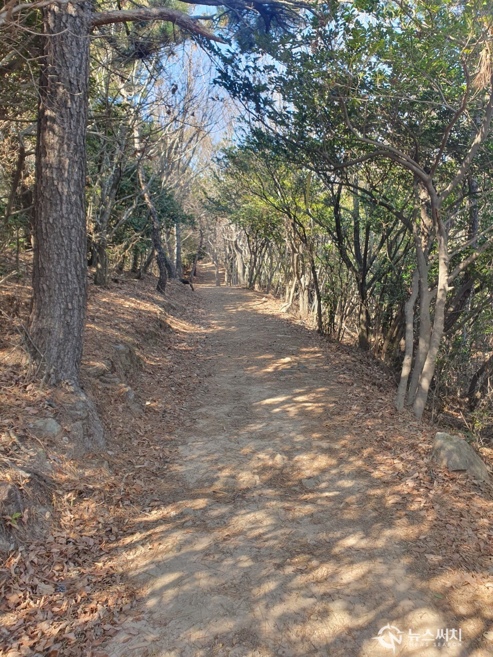 거제시 장승포동을 지나 북쪽으로 걸어 능포동에 진입하였고 경사진 산동네 마을길을 올라 능포봉수대가 있는 산길로 접어들었다. 호젓하고 잘 정비된 산길을 한참 걸었고, 오후 1시 48분 ‘능포봉수대’에 도착하였다.