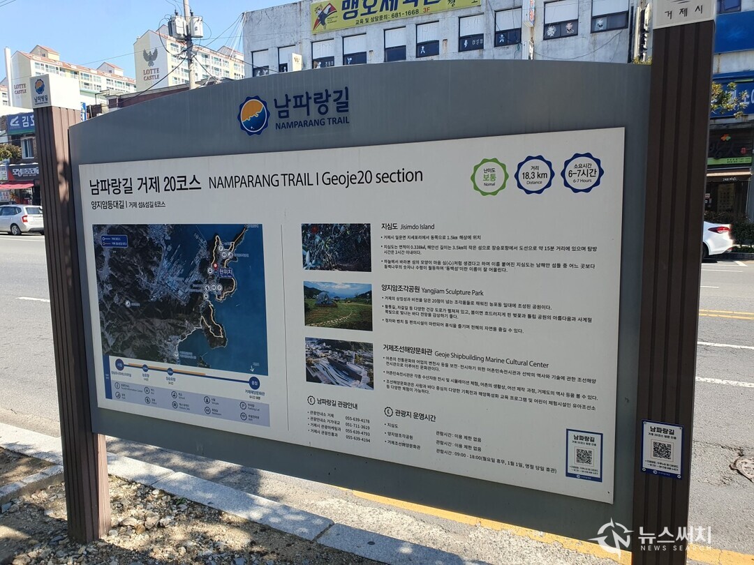 [뉴스써치] 남파랑길 전체 90개 코스 중 경남 거제구간은 16코스부터 27코스까지 총 12개 코스이다. 물론 15코스는 통영시 지역과 거제시 지역이 절반씩 걸쳐 있어 15코스 중 절반은 거제구간이라고 할 수 있으며, 이렇게 볼 경우 남파랑길 코스 중 경남 거제구간은 총 12.5개 코스라고 할 것이다.
