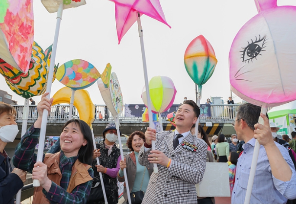 ▲ 오언석 도봉구청장이 주민들과 함께 등(燈)을 들고 환하게 웃고 있다 |