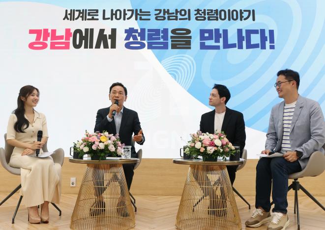 ▲ 출연진들과 함께 이야기를 나누고 있는 조성명 강남구청장 (왼쪽 2번째)