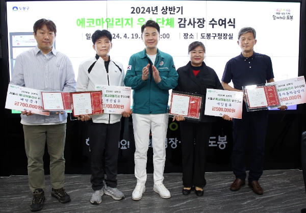 [뉴스서치] 도봉구가 4월 19일 2024년 상반기 서울시 에코마일리지 우수단체로 선정된 도봉구 지역 업체 4개소에 감사장을 수여했다.