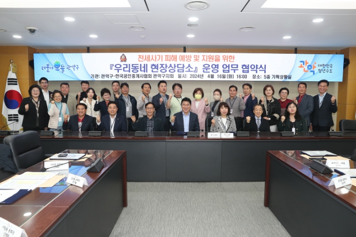 구는 4월 16일 한국공인중개사협회 관악구지회와 전세 피해자 지원과 예방을 위해 ‘우리동네 현장상담소 운영을 위한 업무협약’을 체결했다.