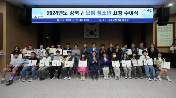[뉴스서치] 서울 강북구는 5월 청소년의 달을 맞아 지난 28일 구청 대강당에서 '2024년 강북구 모범 청소년 표창 수여식'을 개최했다고 밝혔다.