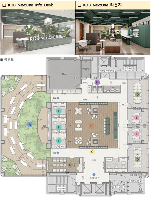 '넥스트원 부산'은 부산 중앙동 소재 산업은행 동남권지역본부 9층을 새로 단장해 신생기업(스타트업) 기업 투자 설명회(IR) 공간과 벤처기업자본(VC) 투자자 사무공간 그리고 보육기업 사무공간이 함께 어우러진 복합공간으로 조성됐다.