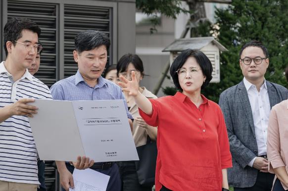 ▲ 8월 5일 고덕비즈밸리 현장을 점검하는 이수희 강동구청장 모습 |