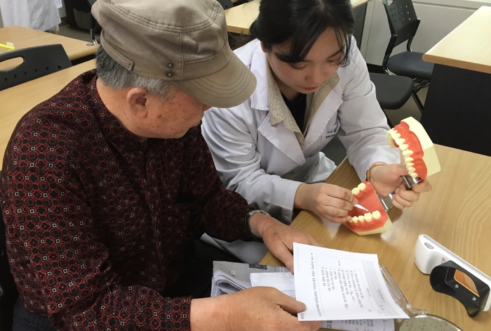 ▲ 성동구보건소에서 어르신들이 구강관리를 받고 있다. |