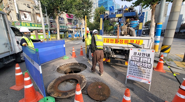 ▲ 지난해 불량맨홀 정비를 진행하고 있는 모습 |