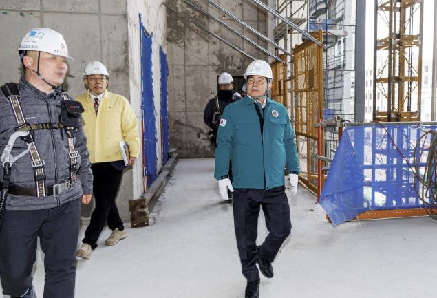 ▲ 지난 3월 박강수 구청장이 지역내 대형 건축공사현장을 찾아 안전 점검을 실시했다 |