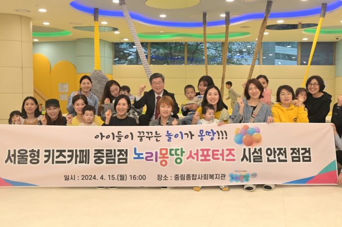 이날 ‘노리몽땅 시설 안전 점검’엔 김길성 중구청장, 노리몽땅 서포터즈 18명 및 어린이집 원장 6명, 건축사, 아동 놀이시설 전문가 등이 참여해 부모와 전문가의 시각에서 위험 요인을 직접 살폈다.