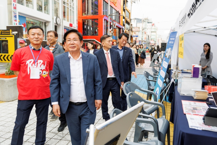 ▲ 지난해 열린 홍대 청년 일자리 페스타에 참석해 현장을 둘러보는 박강수 마포구청장 |