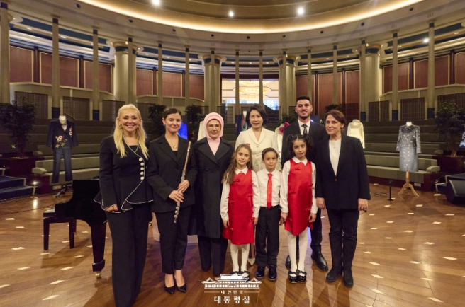 음악공연에서는 어린이 합창단의 ‘아리랑’ 합창에 이어 예술영재고 학생들의 플룻·피아노 연주가 이어졌다. 이번 공연은 에르도안 여사가 타 정상배우자에게 처음으로 선사한 국민도서관 내 음악공연으로, 김혜경 여사가 피아노 전공자로서 음악에 관심이 깊다는 점을 반영해 준비되어 의미가 더욱 컸다.