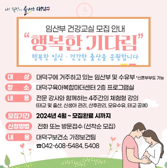▲ 대전 대덕구, 임산부 건강교실 ‘행복한 기다림’ 3기 참여자 모집 |