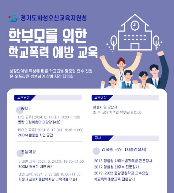 [뉴스서치] 화성오산교육지원청은 지난 6월 4일부터 관내 학부모를 대상으로 학교폭력 예방교육을 운영한다고 밝혔다.