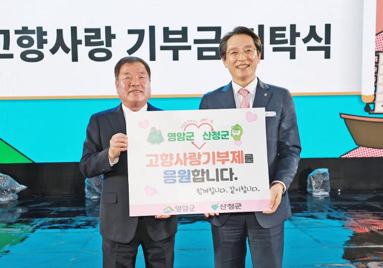 이승화 산청군수는 “교차 기부에 자발적으로 참여해주신 산청군과 영암군 공직자에게 감사하다”며 “1998년부터 영암군과 이어온 소중한 인연을 더 많은 교류와 협력으로 이어가겠다”고 말했다.