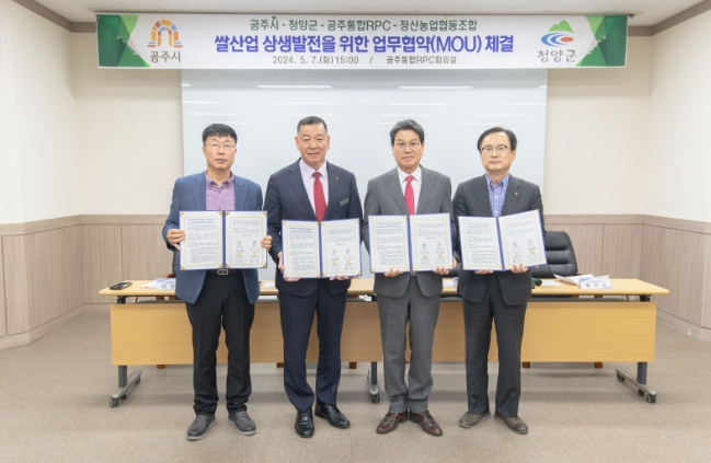 이날 협약식에는 최원철 시장과 김돈곤 청양군수, 임장빈 공주통합미곡종합처리장(RPC) 대표, 황인국 정산농협 조합장 등 관계자 25명이 참여했다.