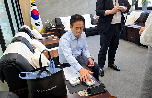 이날 신영재 군수는 직접 돌봄 조끼를 착용하고 어르신들이 착용 시 불편 사항은 없는지 점검하며, 이용에 어려움이 없도록 철저한 준비를 당부했다.