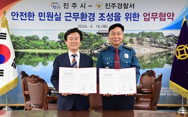 주요 협약내용은 상호 연계체계를 구축한 업무 협력, 비상상황 발생 시 신속한 출동, 진주시-진주경찰서 간 합동 비상 모의훈련 실시, 민원실 내 비상벨 관리‧점검 강화 등이며, 민원실에서 발생하는 폭언, 폭행, 위협 등으로부터 민원 담당 공무원과 방문 민원인을 보호하기 위한 관계기관 간 협력체계를 구축한다.