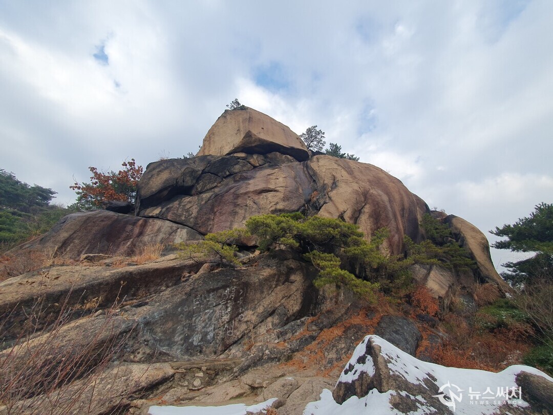 필자는 인왕정을 지나 해골바위를 향해 걸음을 내딛었다. 인왕정 지나 해골바위로 가는 길은 나무데크길로 잘 꾸며져 있어 편안하게 걸을 수 있었다. 오전 10시 55분 인왕산에 있는 특이한 바위 중의 하나인 ‘해골바위’에 도착하였다. 전날 내린 눈으로 해골바위 위에는 하얀 눈이 쌓여 있었다.