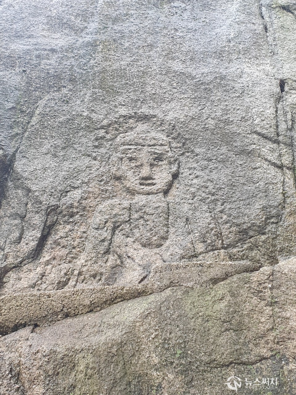 필자는 해골바위를 지나 선바위 계곡을 통과한 뒤 성곽길로 합류하는 등산로를 선택하여 걸었다. 오전 11시 1분 등산로 인근 선바위계곡에 있는 마애불이 새겨진 곳에 도착하였다.