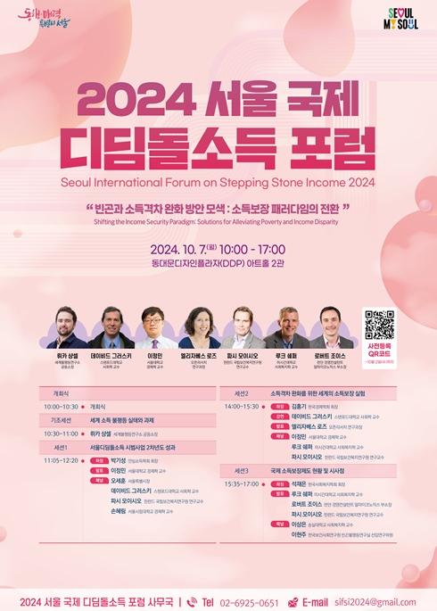 서울시는 7일 DDP 아트홀 2관에서 개최되는 ‘2024 서울 국제 디딤돌소득 포럼’에서 2년차 서울디딤돌소득 성과를 공개하고, 소득격차 분야와 불평등 분야 국내외 석학들과 함께 정책 평가와 향후 나아가야 할 방안 등을 논의한다고 밝혔다. ‘서울디딤돌소득’은 일정 금액을 전 국민에게 동일하게 지급하는 기본소득과 달리 기준 중위소득 대비 부족한 가계 소득의 일정 비율을 지원해 소득이 적을수록 더 많이 지원하는 하후상박형 복지제도다.