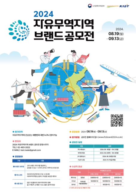 [뉴스서치] 산업통상자원부는 전 국민을 대상으로 ‘2024 국민 참여 자유무역지역 브랜드 공모전’을 8월 19일부터 9월 13일까지 4주간 진행한다.