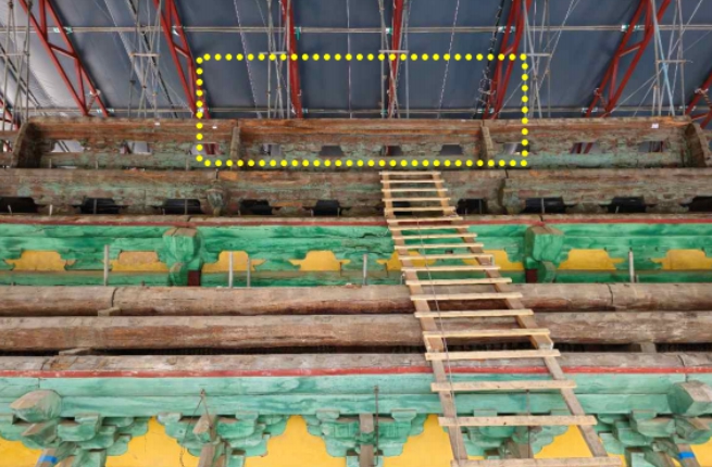 | ▲ 상량묵서 발견 위치 – 중앙칸 종도리 하부 |