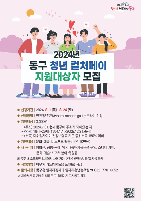 ▲ 인천 동구, ‘청년 컬처페이 지원 대상자’모집 |