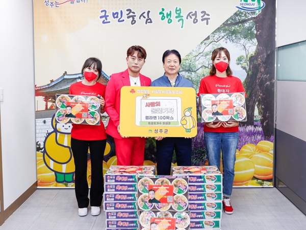 | ▲ 트로트 가수 황태자, 성주군에 사랑의 컵라면 기탁 |
