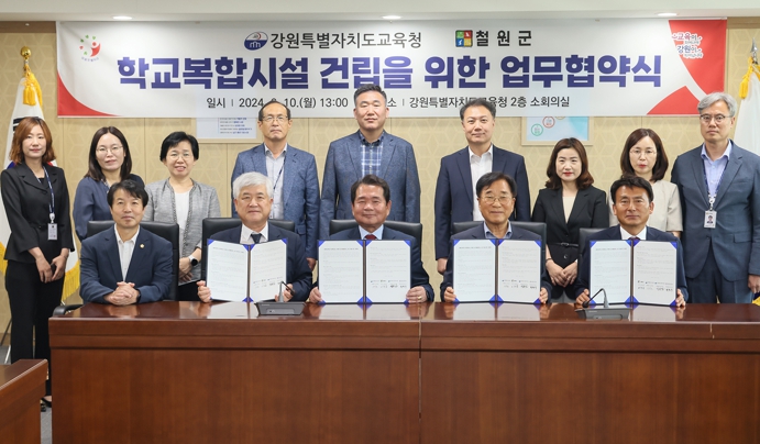 강원특별자치도교육청 소회의실에서 열린 협약식에는 이현종 철원군수, 강원특별자치도교육청 신경호 교육감, 철원교육지원청 정문걸 교육장, 신철원고등학교 최병기 교장 및 업무관계자들이 참석했으며 학교복합시설 건립을 위한 상호 협력에 동의했다.