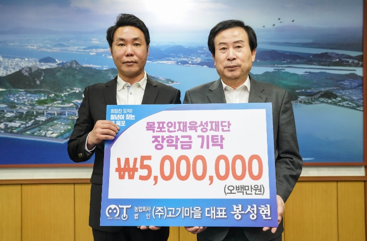 [뉴스서치] 농업회사법인 ㈜고기마을(대표 봉성현)이 지난 2일 목포인재육성재단에 우수 인재 양성을 위한 장학기금 500만원을 기탁했다.