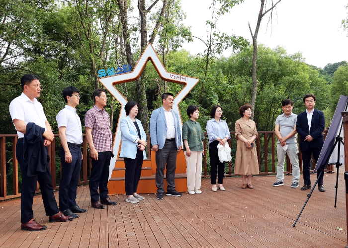 먼저 성북동 산림욕장과 숲속야영장을 방문한 의원들은 야영데크와 방문자센터, 숲속놀이터 등 사업추진 현황에 대해 상세한 설명을 듣고 시설을 직접 둘러보며 진행 상황을 점검했다.