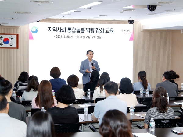 [뉴스서치] 대전 서구는 지난 28일 구청 장태산실에서 지역사회 통합 돌봄 사업 관계자 80여 명을 대상으로 역량 강화 교육을 실시했다.