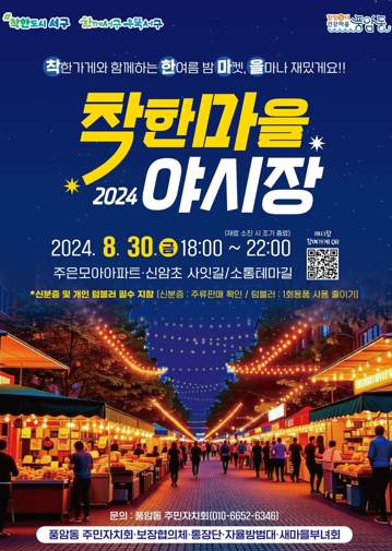 [뉴스서치] 광주광역시 서구 풍암동에 늦여름 밤을 환하게 밝혀줄 ‘착한마을 야시장’이 열린다.