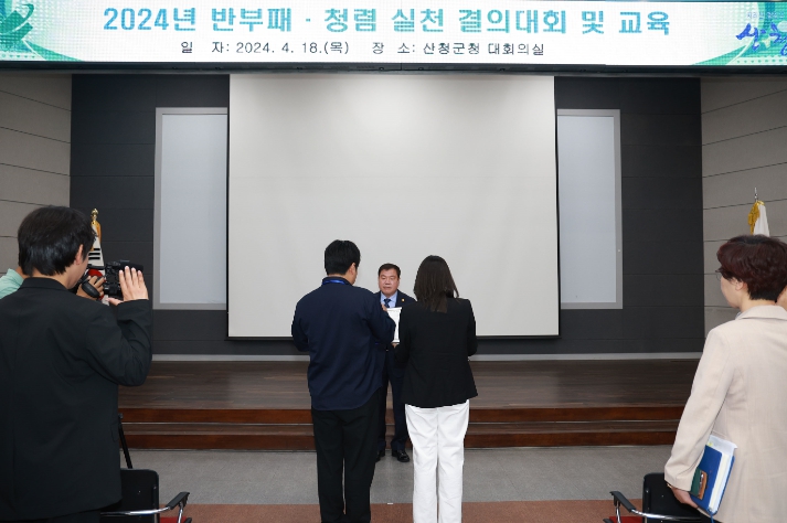 18일 산청군은 군청 대회의실에서 ‘반부패·청렴 결의대회 및 교육’을 실시했다고 밝혔다.