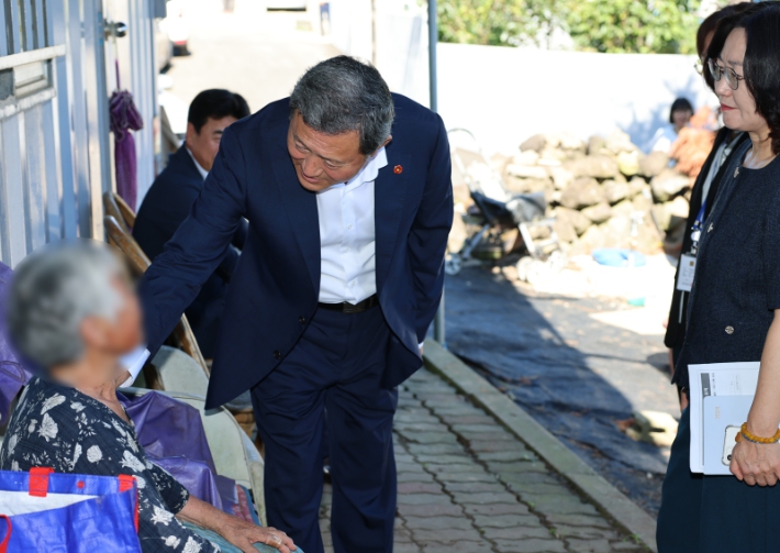 | ▲ 폭염 속 주거취약가구 방문한 김완근 제주시장 |