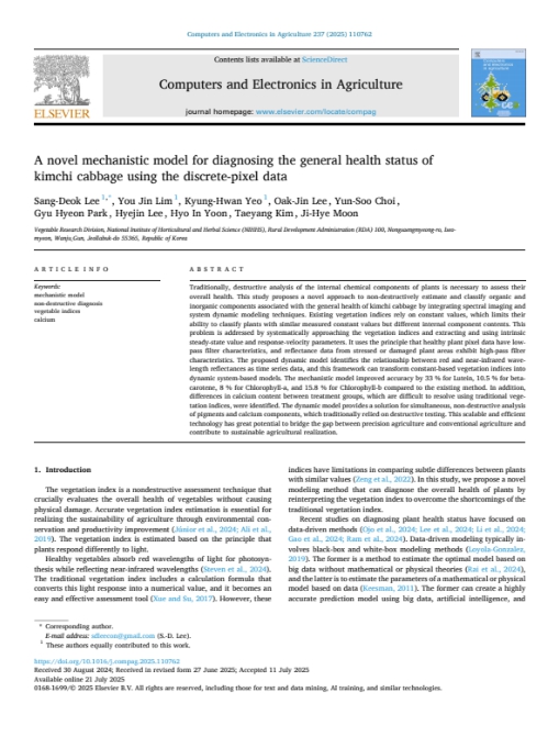 한편, 연구 결과는 올해 10월호 농업 분야 국제학술지 ‘컴퓨터스 앤 일렉트로닉스 인 애그리컬쳐(Computers and Electronics in Agriculture)(논문인용지수 8.9)’에 실려 학술적으로 인정받았다.
