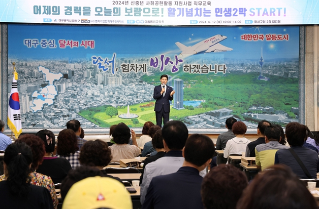 [뉴스서치] 대구 달서구가 12일 구청 2층 대강당에서'2024년 신중년 사회공헌활동 지원사업'의 참여자 직무교육을 실시했다.