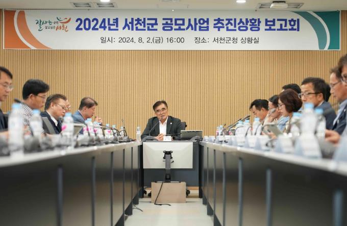 [뉴스서치] 서천군은 지난 2일 김기웅 군수를 비롯한 부군수, 부서장 등이 참석한 가운데 군청 상황실에서 지역 발전 동력 마련을 위한 2024년 공모사업 추진상황 보고회를 개최했다.