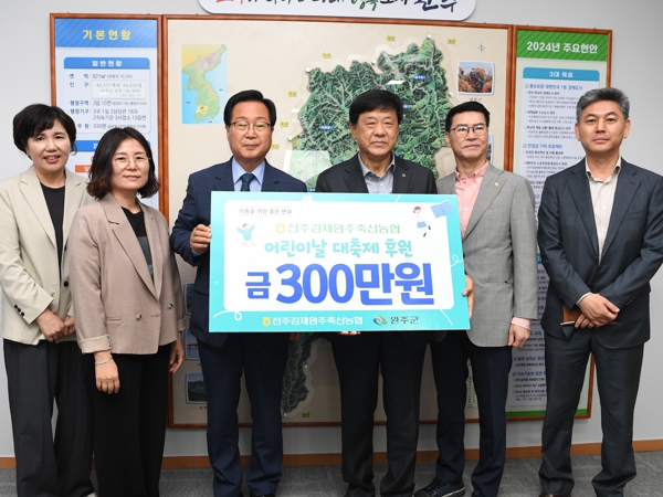 지난 29일 전주김제완주축협은 군청을 찾아 굿네이버스 전북지역본부가 주관하는 제102회 어린이날 대축제 후원금 300만 원을 기탁했다.