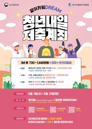 청년내일저축계좌Ⅰ는, 생계·의료·주거·교육급여 가구 및 중위소득 50%이하(4인가구 기준2,864,956원 이하) 근로·사업소득이 있는 청년(만 15세이상~만 39세 이하)이 매월 10만원 이상(10~50만원) 저축 시 정부가 근로소득장려금 30만원을 지원하는 방식이다. 3년 동안 지속적인 근로활동, 자립역량교육이수 등의 요건이 충족되면 1,440만원(본인저축액 최소 360만원, 근로소득장려금 1,080만원) 및 이자지원을 받을 수 있다.