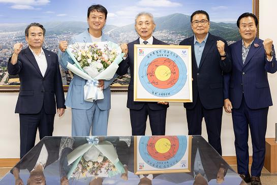 ▲ 윤환 계양구청장, 파리올림픽 양궁 국가대표팀 박성수 감독에 축하와 격려 |