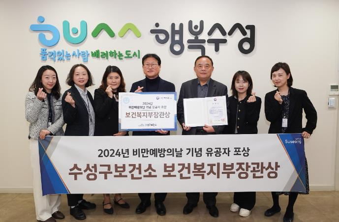 [뉴스서치] 대구 수성구보건소는 ‘2024년 비만예방의날’ 기념 유공자 포상에서 보건복지부장관 표창을 받았다고 11일 밝혔다.