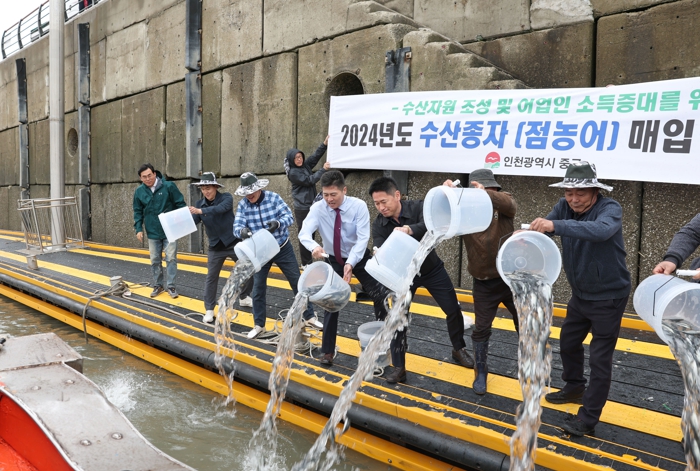 ▲ 인천 중구, 삼목항에 어업인 소득증대를 위한 어린 점농어 38만미 방류 |